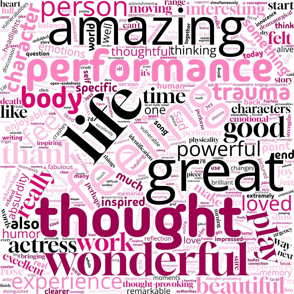“Makes me question life but in a beautiful way. Best one person show I’ve ever seen.”